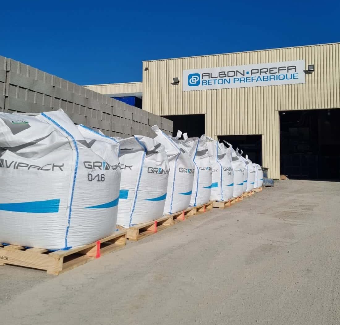 ALBON PREFA et SOBEFA : production et distribution de produits préfabriqués pour les professionnels du négoce de matériaux de construction. Nous produisons, stockons et livrons pour vous , une gamme complète de blocs et entrevous béton, planchers, ainsi que big bags et sacs de granulats la marque GRAVIPACK ou à vos couleurs.